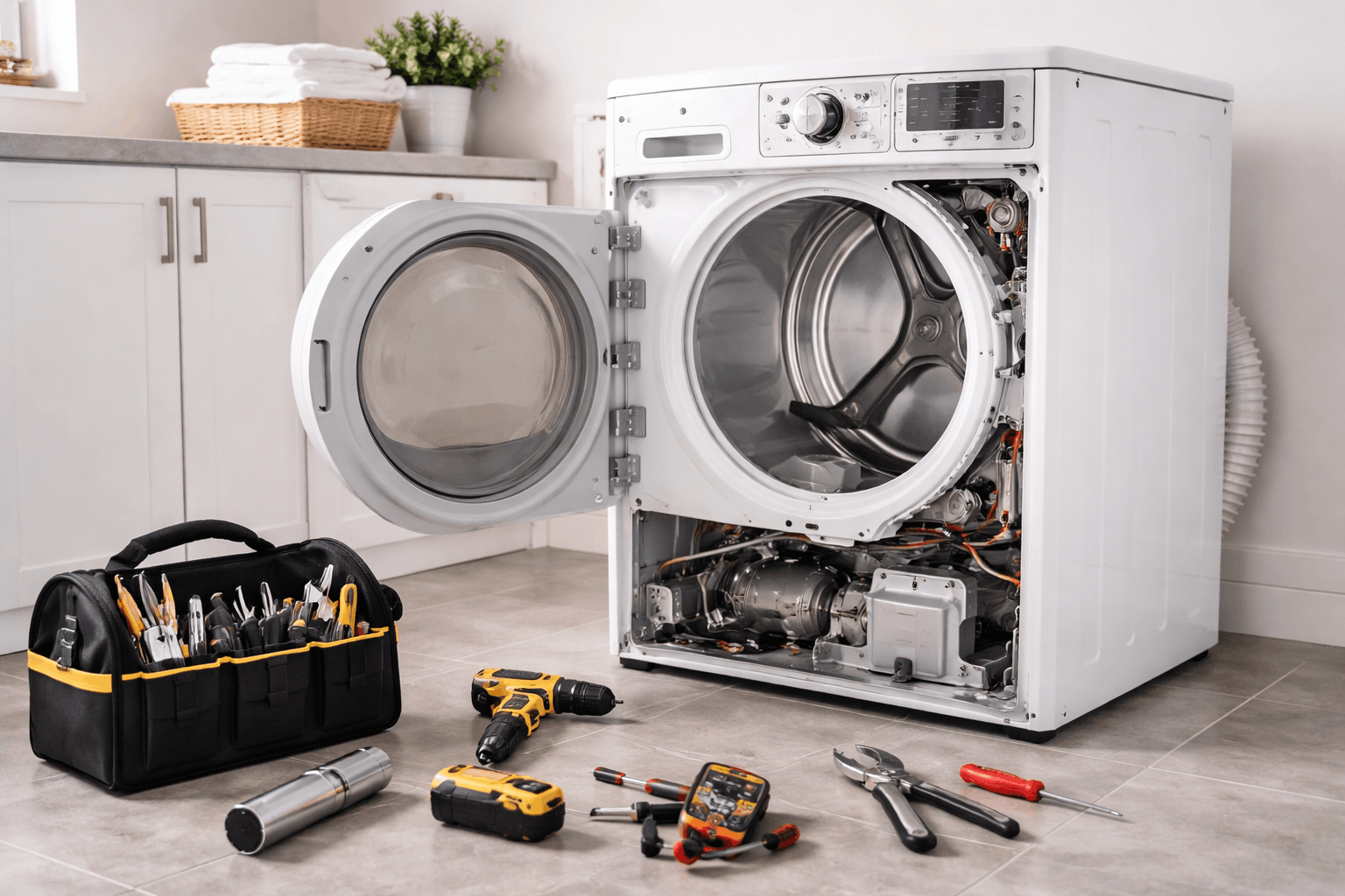 We service all types of dryers, including high-capacity models and stackable units. Our technicians quickly identify and resolve common emergency issues such as dryers not starting, burning smells, unusual noises, failure to heat or tumble, leaks, and error code problems.
